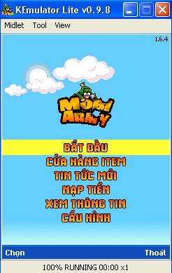 » Sau khi giải nén xong ta chạy KEmulator. Khi xuất hiện màn hình 'Gia Lap Kemulator',ta chọn Midlet » Load jar... rồi tìm đến file game đuôi .jar mà bạn đã tải về là "Xong"